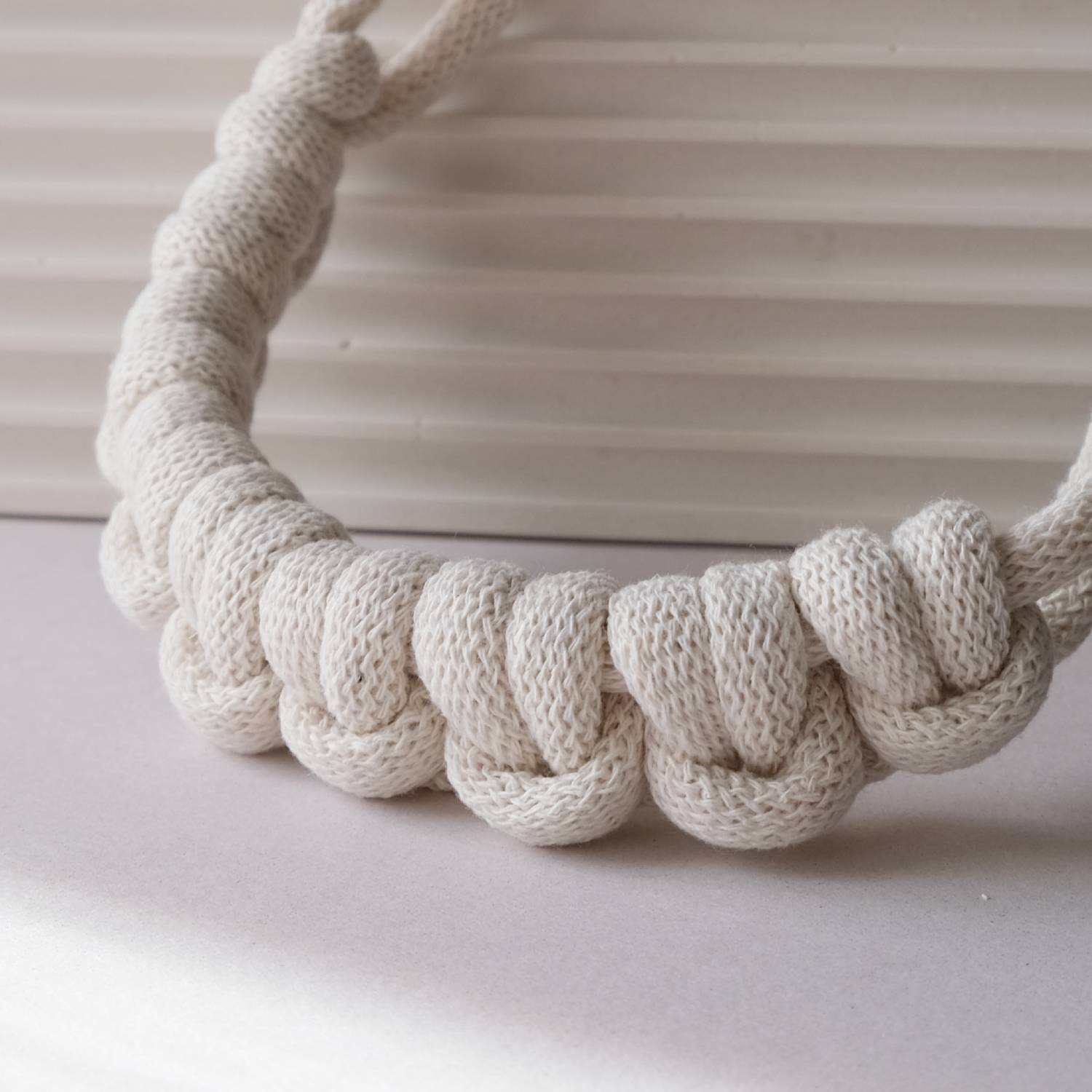 Cotone e corde intrecciate 100% cotone certificato OEKO-TEX, flessibile e morbido al tatto.